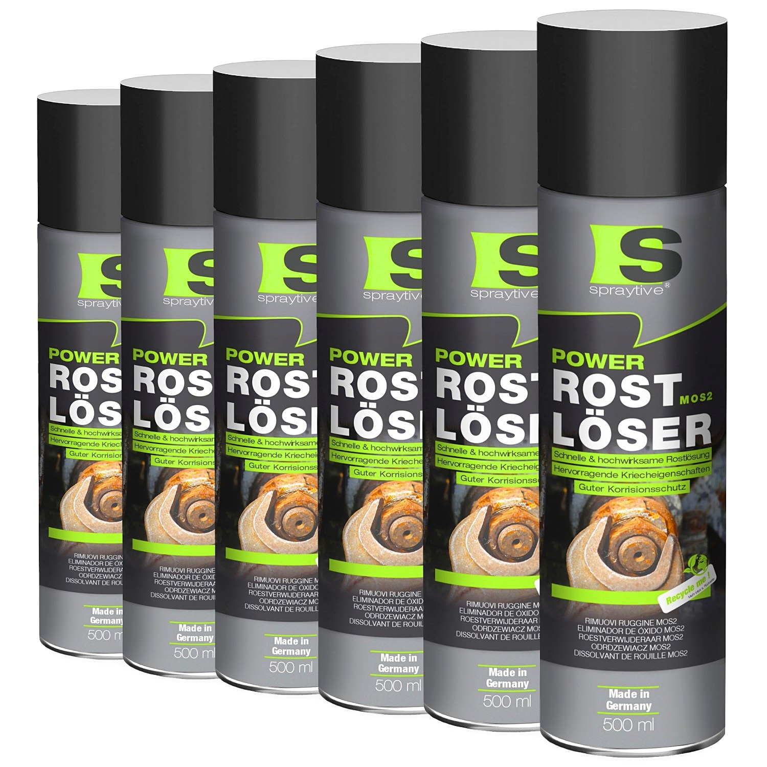 6 × 500 ml Power Rostlöser mit MoS₂ – Kriechfähiger Rostentferner mit Reibminderung und Korrosionsschutz