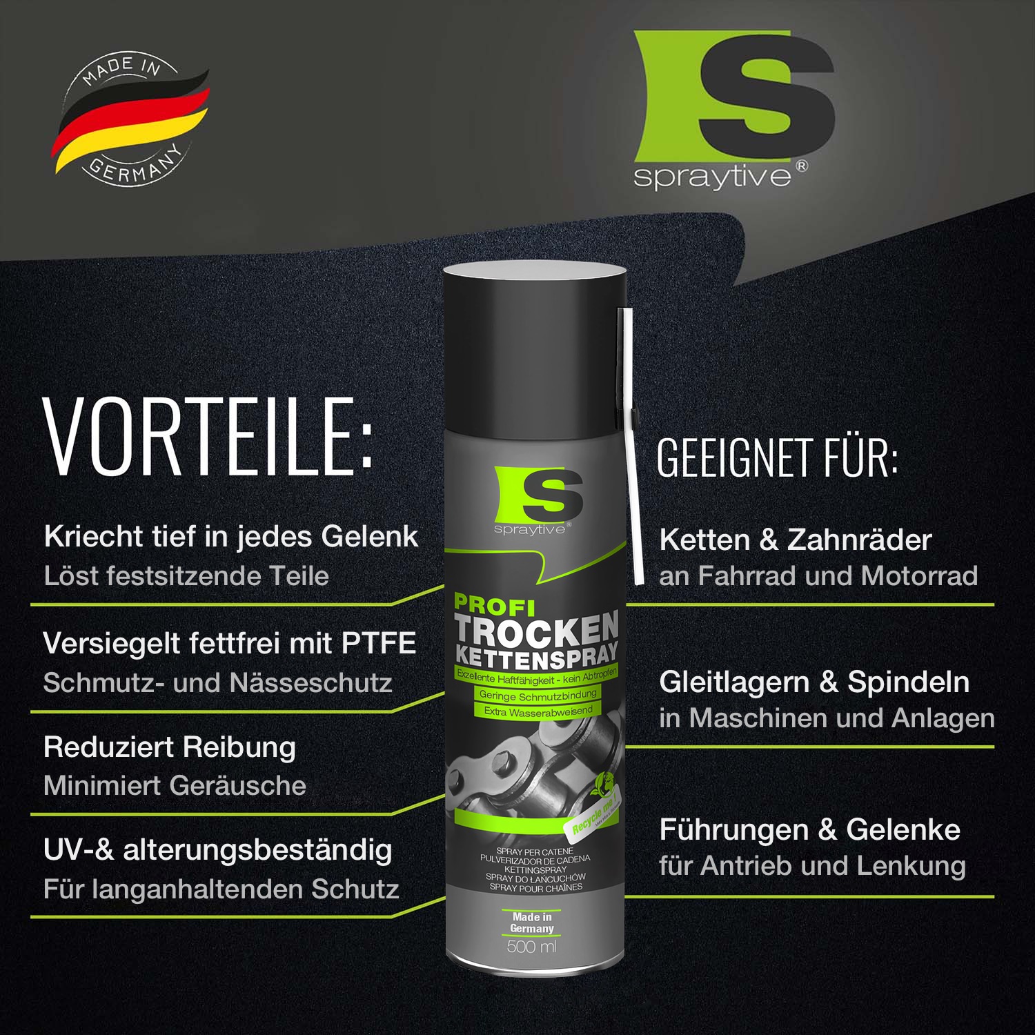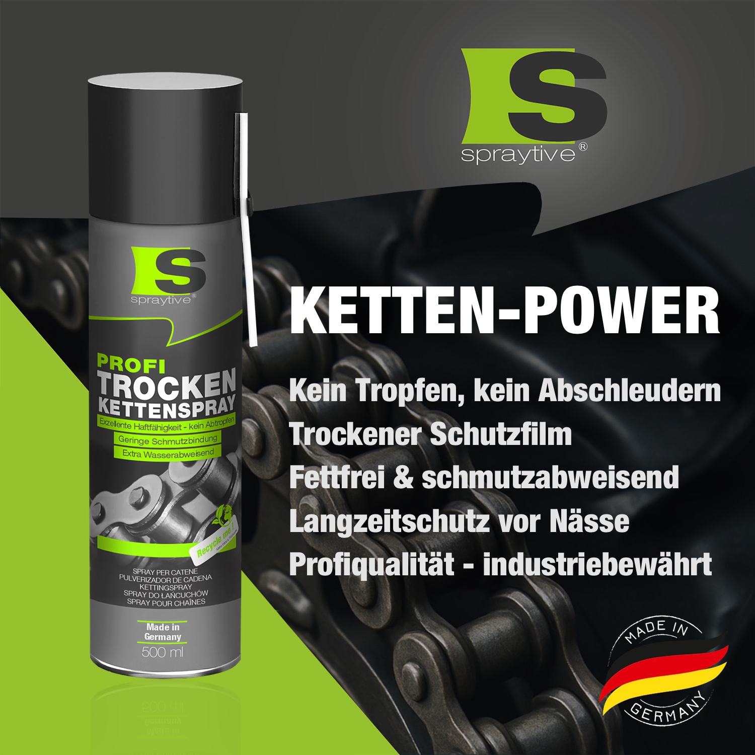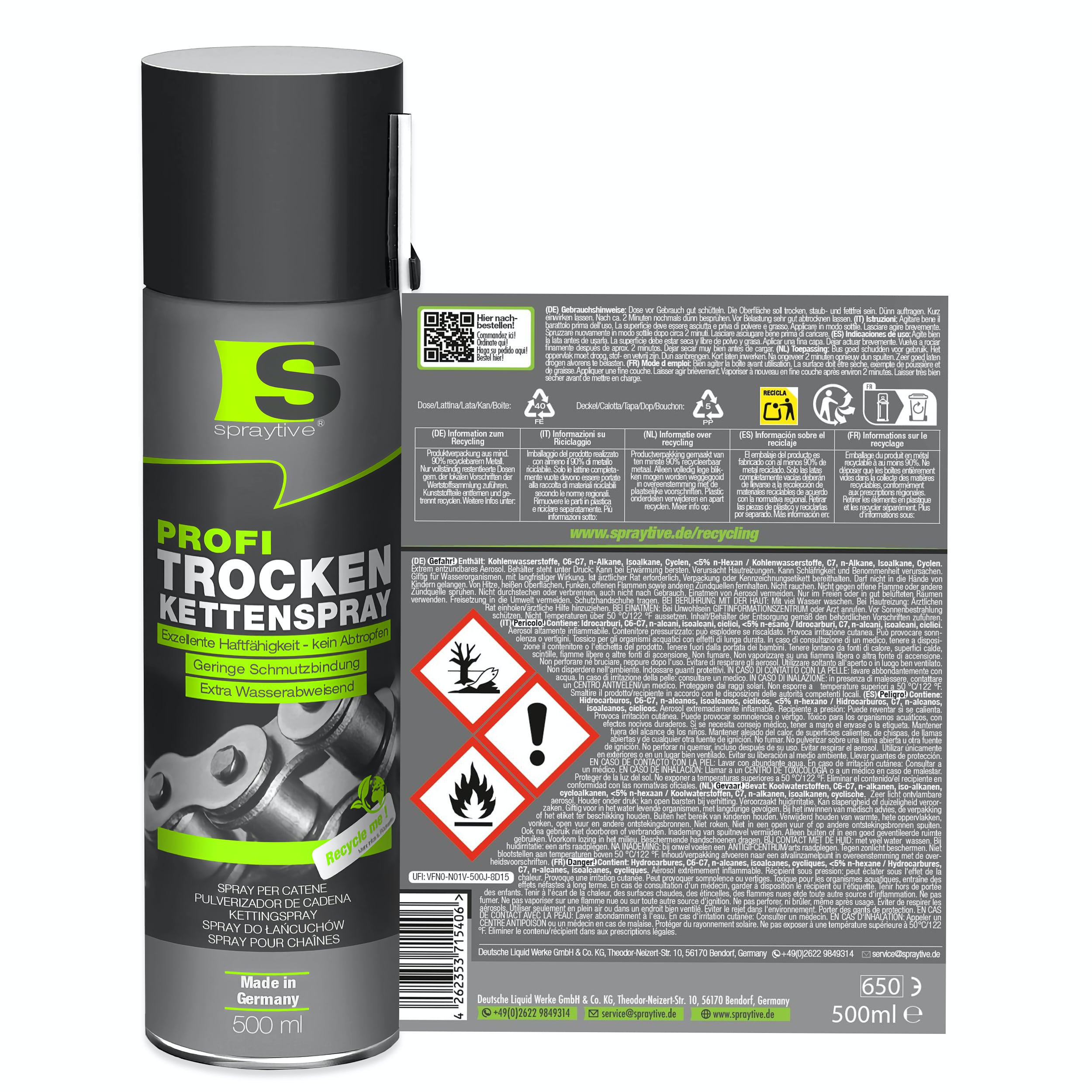 6 x 500 ml Profi Trockenkettenspray – Reibung senken, leiser & leichter Kettenlauf, wasserabweisend