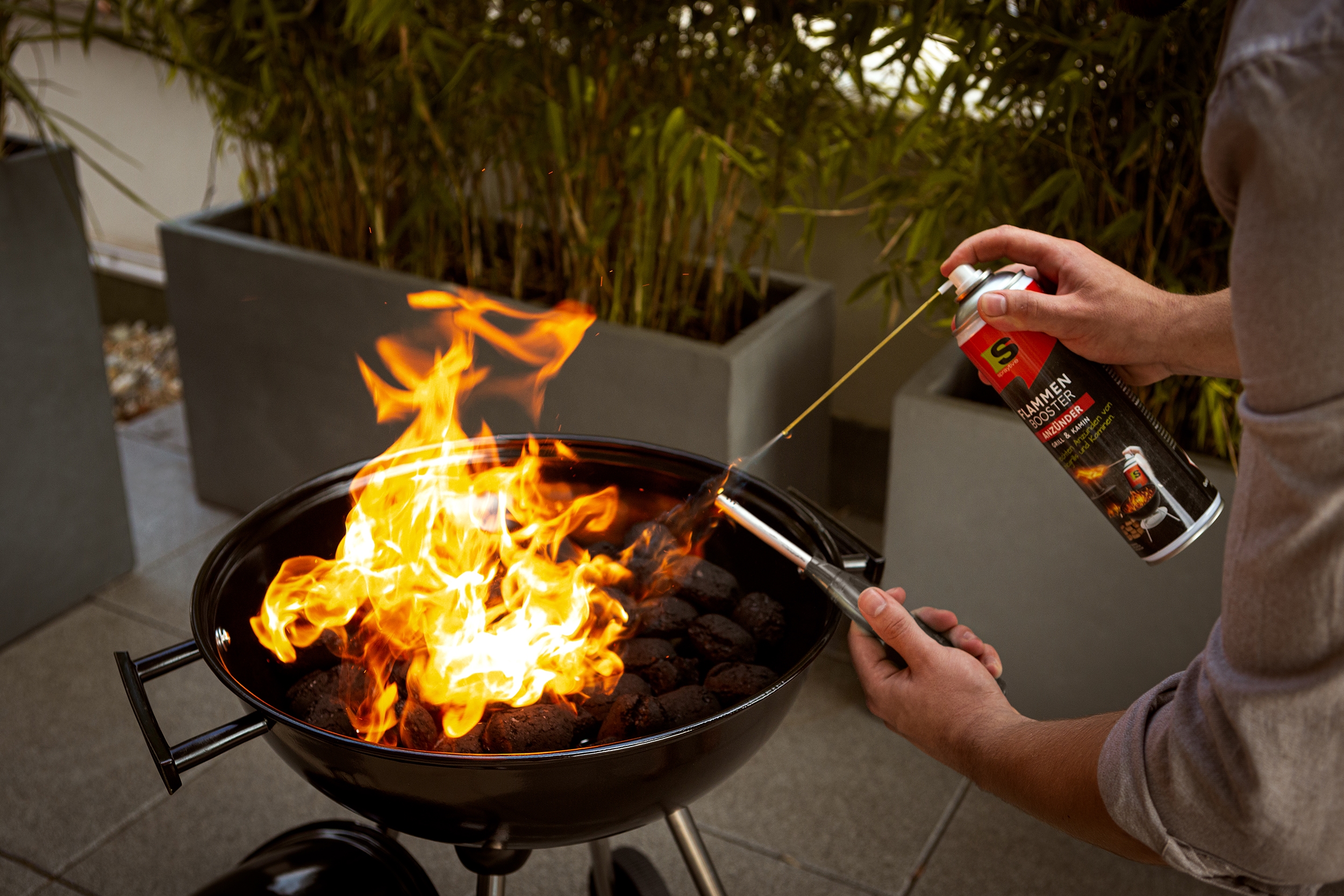 - Spektakuläres Anfeuern ohne klassische Grillanzünder.